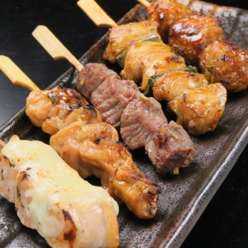 営業開始前におこす炭火。強い火力で旨味を凝縮。焼き加減・塩加減ともに絶妙。炭火の芳しい香りも楽しめる自慢の串焼き各種。新鮮な鶏はもちろん、野菜や旬ものも多数。日替わり串もお楽しみに。串焼きの盛り合わせはご要望に合わせてお作り致します。お気兼ねなくお声掛けください。